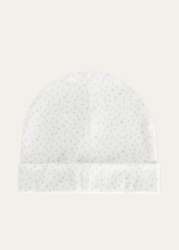 Infant’s brimmed beanie made from soft cotton jersey. Featuring a Little Numbers print, this style is comfortable and gentle against the skin.