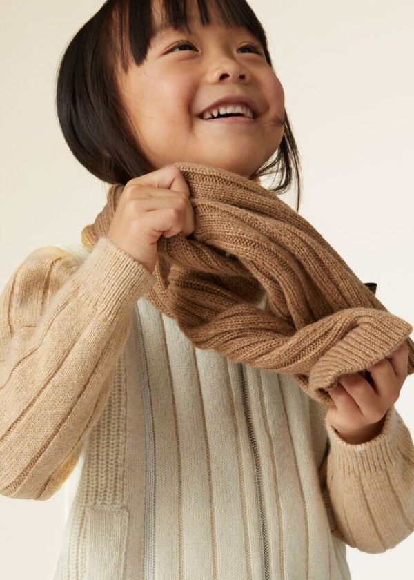 Crafted from cashmere yarn, the Winter Story scarf is cozy and soft, providing perfect comfort on the coldest days of the year. Its seamless, ribbed design alternates different textures for added volume and movement. A versatile accessory that adds a refined touch to any look.