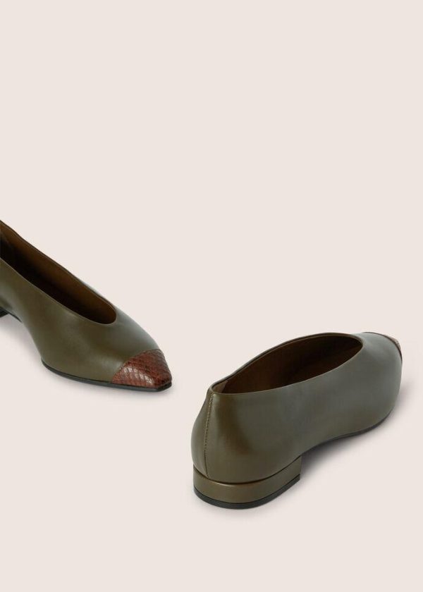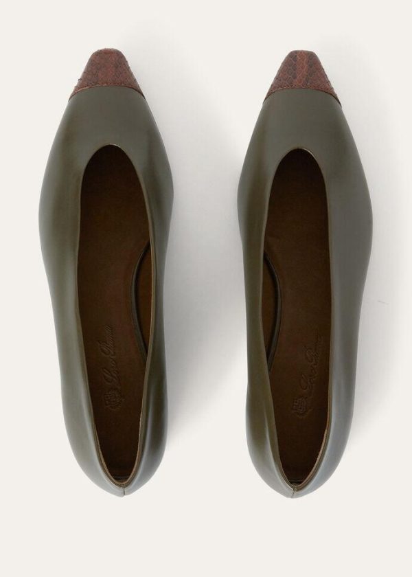 Step into elegance with our ballet flats, featuring a slightly rounded, tapered toe. Crafted with the utmost care from calfskin, these flats have a smooth feel and a distinctive semi-gloss finish. The contrasting python-effect embossed toe adds a touch of sophistication. Whether for a casual day out or a special occasion, these ballet flats are the perfect pair to slip into.