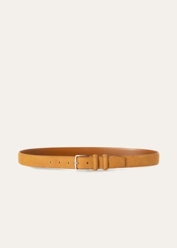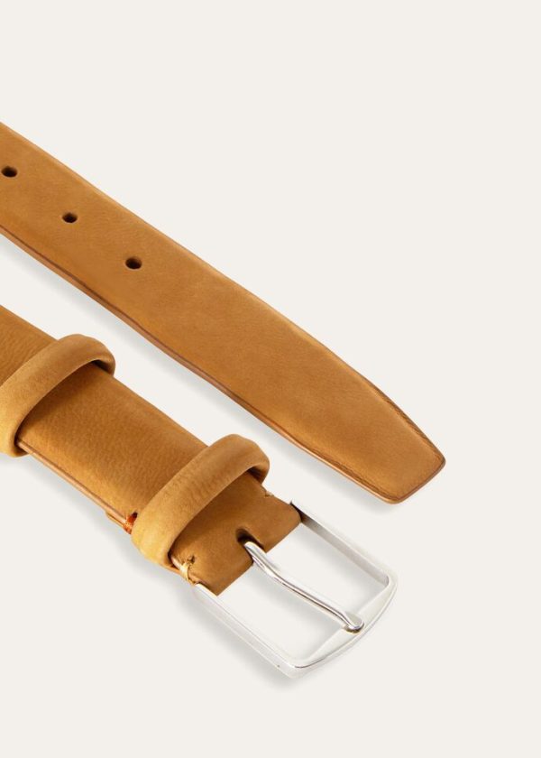 Belt in velvety soft calfskin styled with a square buckle in palladium-finish metal.