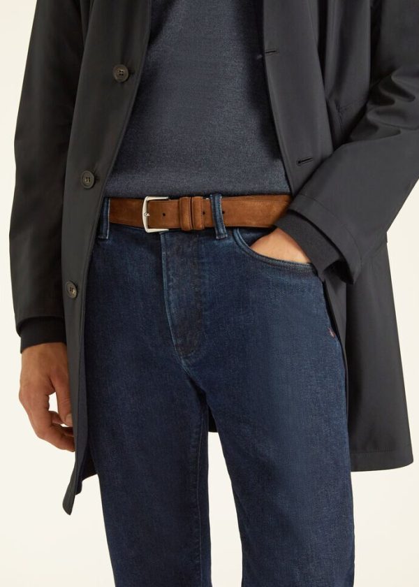 Men’s classic and informal belt in soft Alsavel calfskin. Palladium-finish metal buckle customized with the Loro Piana logo.