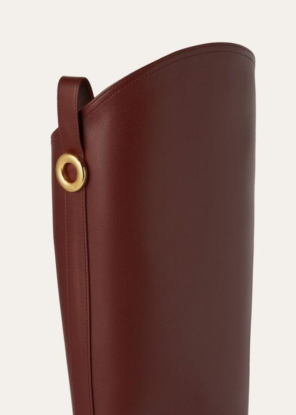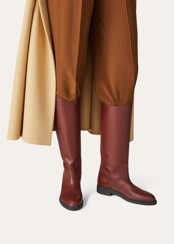 These calfskin tube boots are inspired by classic equestrian styles. The leg shaft is defined by a silhouette that is lower on the inside than the outside — a sophisticated detail that accentuates their refined, sporty allure. The natural beauty of the exceptionally soft leather is enhanced by meticulously selected materials and exclusive techniques used for tanning, dying and light finishing. Perfect for daily looks when worn with long skirts or pants.
