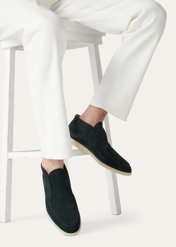 Classic Loro Piana chukka boots made from suede with a water-repellent, stain-resistant treatment and Napa-calfskin interior. A patented opening with elastic hidden under the tongue guarantees an extremely comfortable fit. Perfect in formal or sportswear looks.