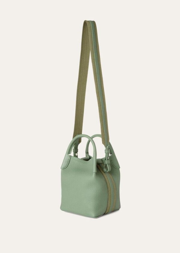 A detachable, cotton-and-leather shoulder strap wraps around the entire bag like a ring