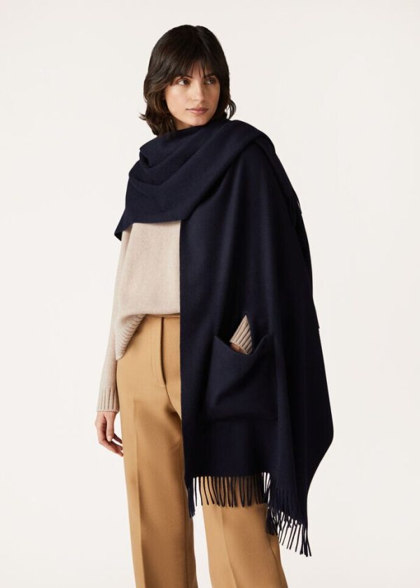 Cashmere stole. The cashmere’s pleasant texture is enhanced by Loro Piana’s exclusive “frisson” finish, whose glistening look brings out the brightness of the colors. This warm, cozy item can be draped around the neck or over the shoulders. Patch pockets complete this distinctive style.
