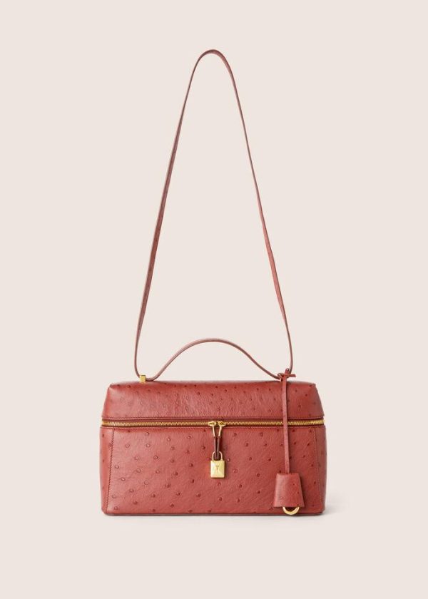 A sophisticated iteration of the Extra Pocket, crafted in ostrich leather and embellished with Sun Gold hardware. The immaculately crafted leather has been treated with an exclusive new finish that gives it a subtle and sophisticated sheen. This special treatment not only enhances its beauty but also makes it irresistibly soft to the touch. With a more modern and fresh look, it features the new, redesigned Loro Piana charms – now three-dimensional, removable, exquisite and feminine. The versatile two-way strap allows the bag to be carried over the shoulder, across the body or elegantly in the hand.