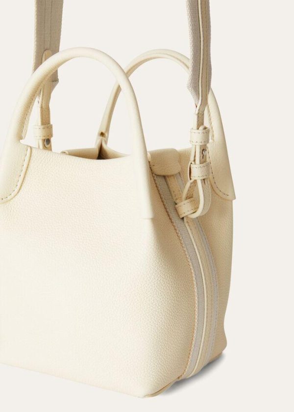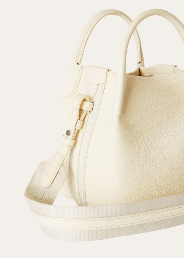 A detachable, cotton-and-leather shoulder strap wraps around the entire bag like a ring