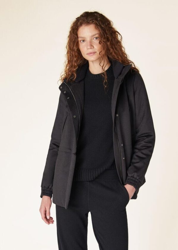 Ski jacket in cashmere treated with Storm System® for a waterproof, wind-resistant finish. Styled with a hood edged in soft fox fur, this is the ladies’ version of the men’s jacket originally designed for the Alpine Ski World Cup Finals in Bormio in 2000. Ideal in the mountains and on the slopes, but also perfect for rainy or snowy days in the city.