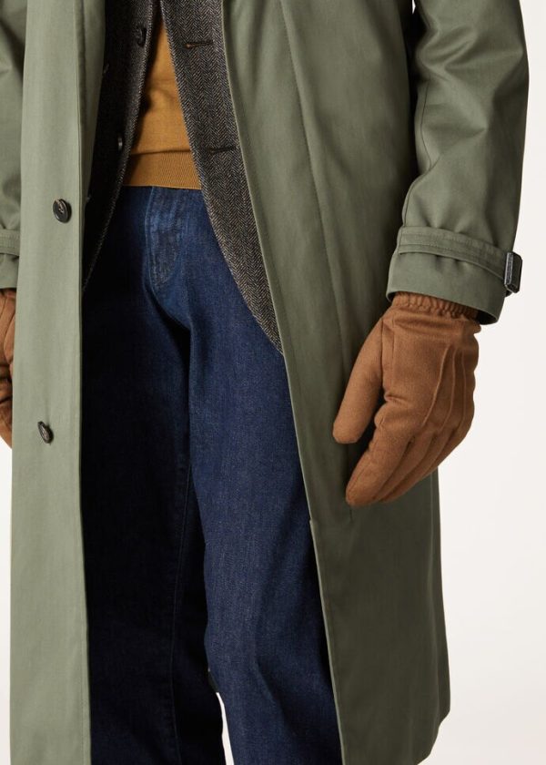Cashmere gloves treated with Storm System® for a waterproof, easy-clean finish. The palm is in tonal suede and the lining is in soft cashmere.