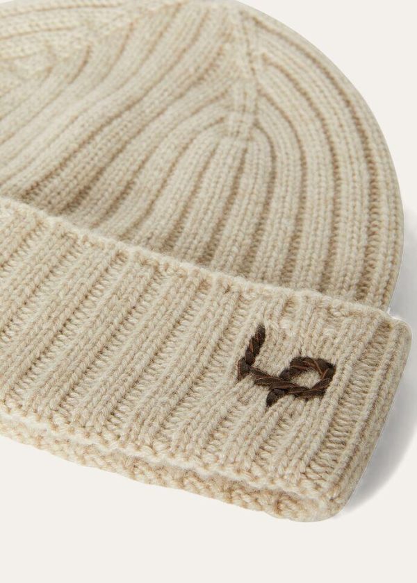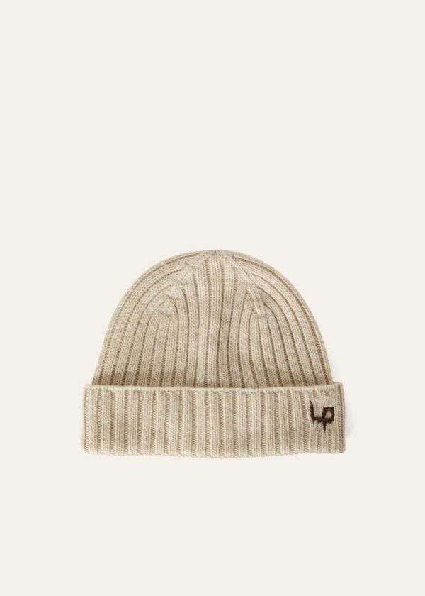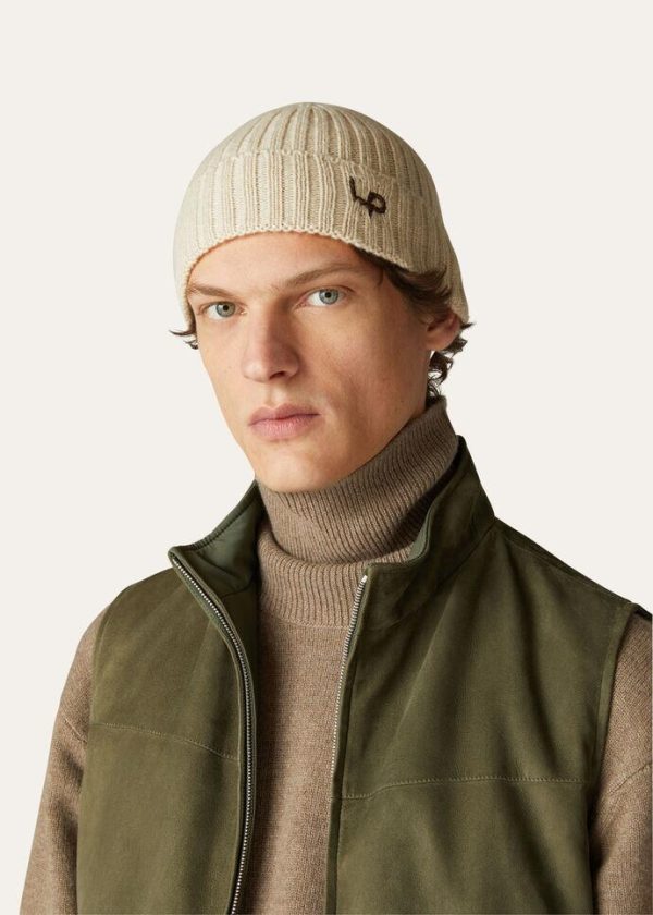 Crafted from cashmere yarn, this extremely fluffy beanie is defined by an English rib and dynamic appearance. Its soft, lightweight texture is enhanced with a LP logo in hand-embroidered plonge leather. Perfect in masculine aviator looks.