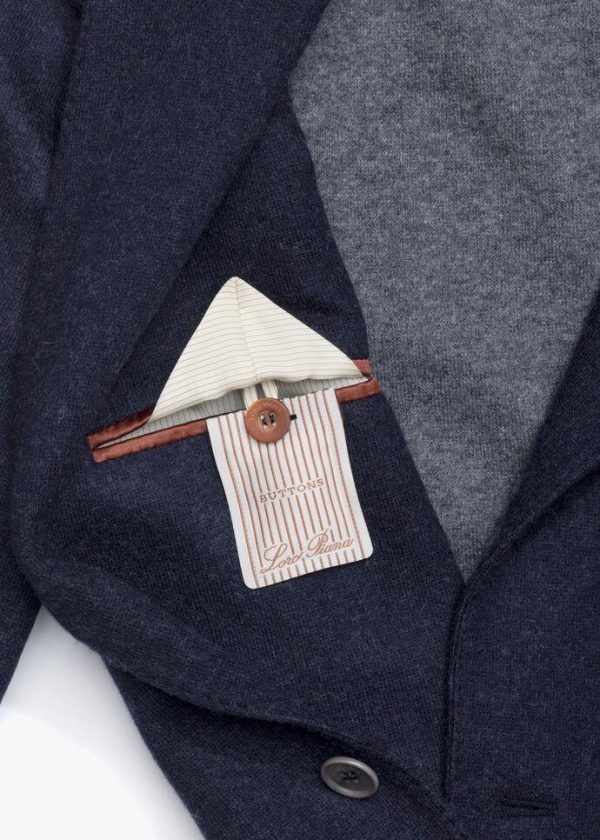 Jacket in two-tone double-sided cashmere jersey. A relaxed, wearable alternative to the sports jacket for business and pleasure. Layer under outerwear or team with the sweaters and lightweight bomber jackets in the winter offer.