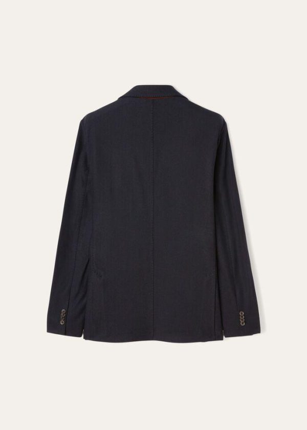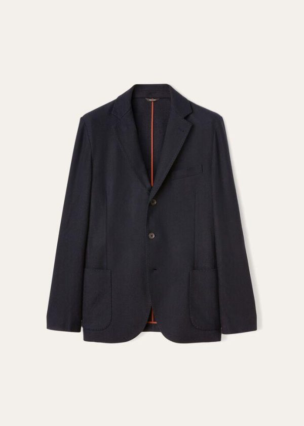 Classic three-button jacket crafted from mélange effect cashmere and silk jersey. Unlined and supremely comfortable, perfect at the beginning of the season.