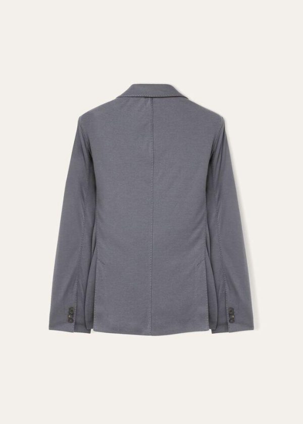 Unlined, single-breasted, jersey jacket made from cashmere and silk. Its versatile, short, form-fitting cut is enhanced by a combination of luxury yarns, which is extremely comfortable next to the skin.