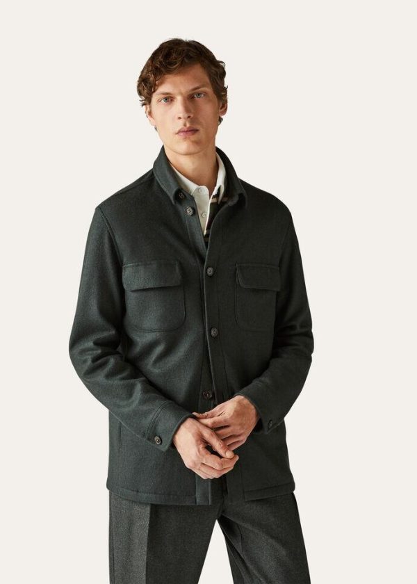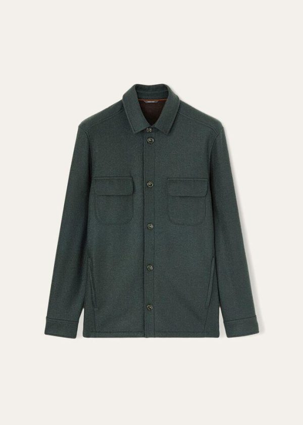 Shirt/jacket in two-tone double cashmere jersey styled with a shirt-style collar and visible button fastening.