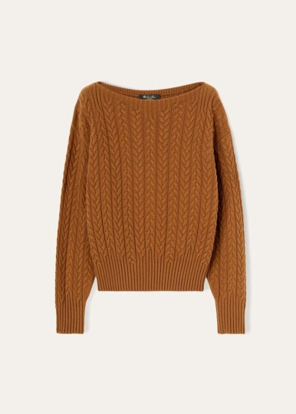 Home to some of Loro Piana’s iconic yarns, Mongolia inspires parts of the Autumn/Winter collection. Crafted from one-of-a-kind, naturally soft, lightweight vicuña yarn, this flowing boat-neck sweater features a three-dimensional cable knit. The rarity of this extraordinary material is interwoven with Loro Piana’s history and the brand’s dedication to safeguarding excellence. The cropped hem wraps around the hips, creating a highly feminine, lightly balloon silhouette.