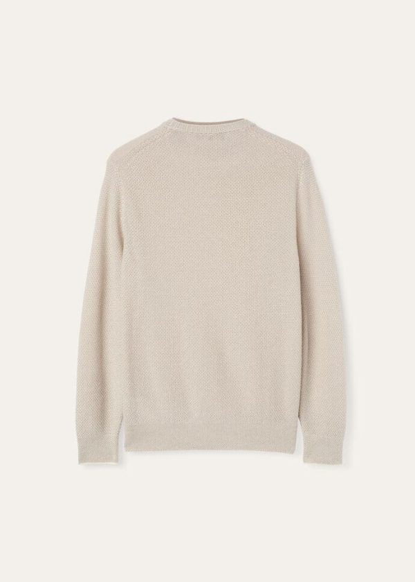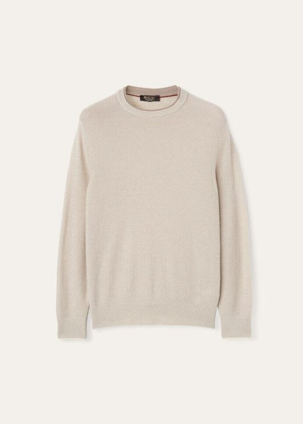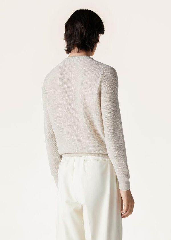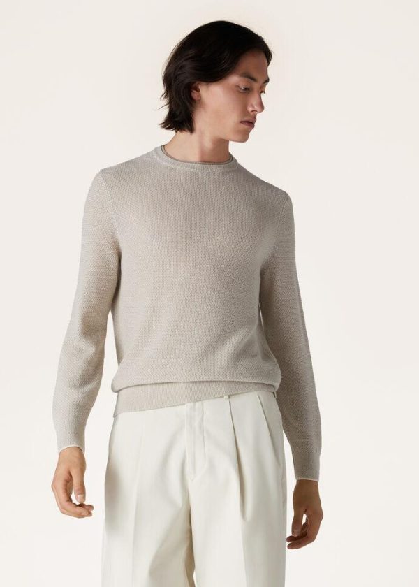 Knit crew neck made from extremely soft, lightweight baby cashmere yarn. Its textured jacquard weave provides a sophisticated three-dimensional allure to the colors. This extremely versatile style can be worn everywhere and is perfect under a jacket.