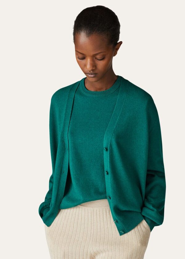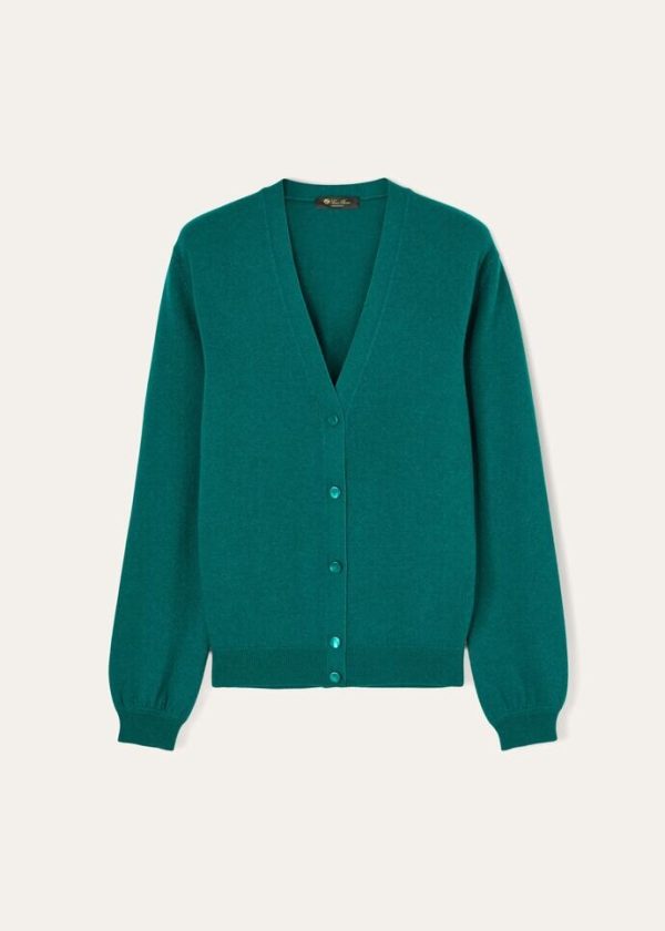 This minimalist cardigan showcases the spirit of ancient Andean cultures and Loro Piana’s expertise in treating highly luxurious yarns. It is crafted from an extremely delicate, cashmere-and-silk mélange yarn that is soft, flowing and pleasant to the touch. Thanks to a feminine, plunging V-neck, it can be worn everywhere all season long.