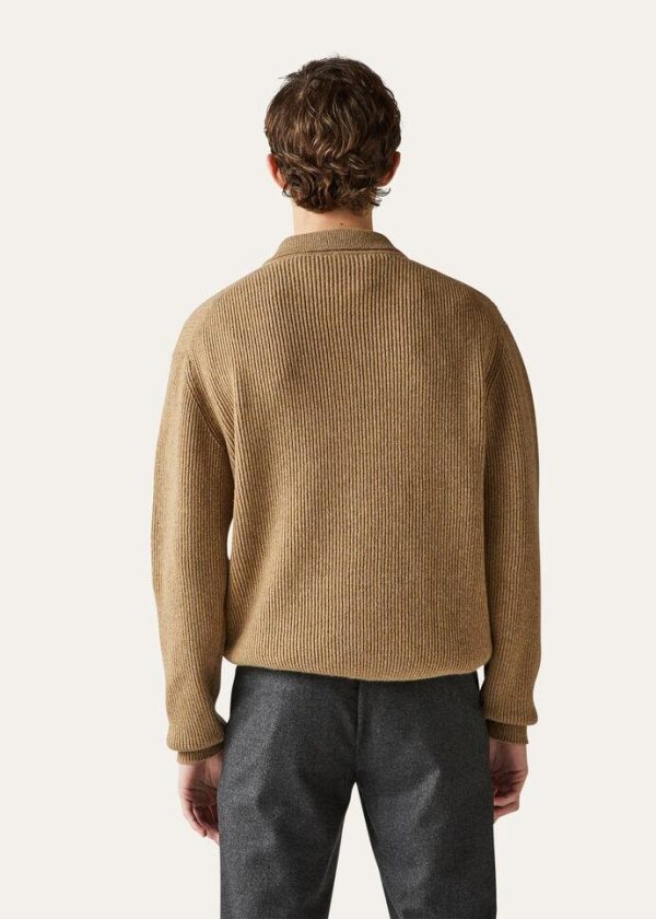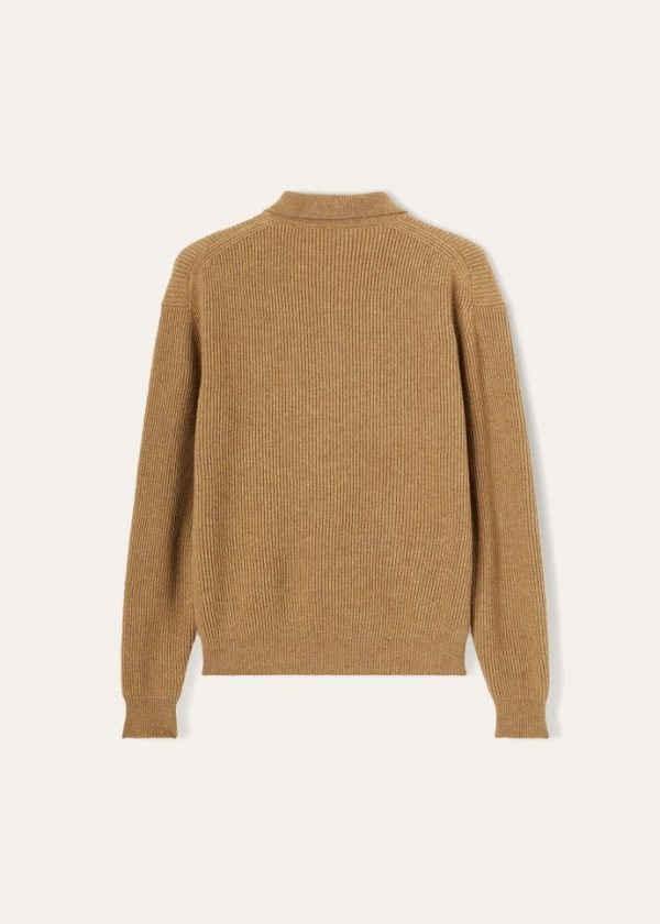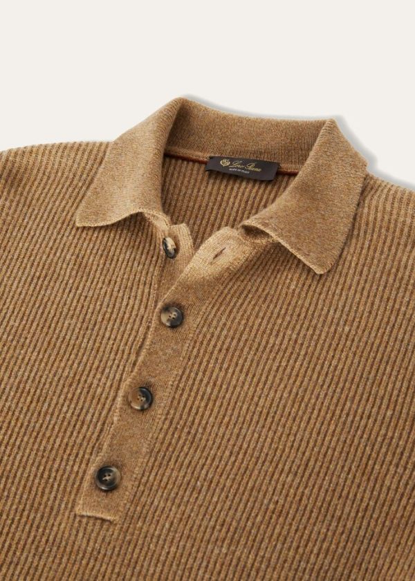 Button-up polo shirt made from naturally soft Coarsehair® cashmere yarn. This minimalist, one-of-a-kind style is enhanced by a sporty English knit.