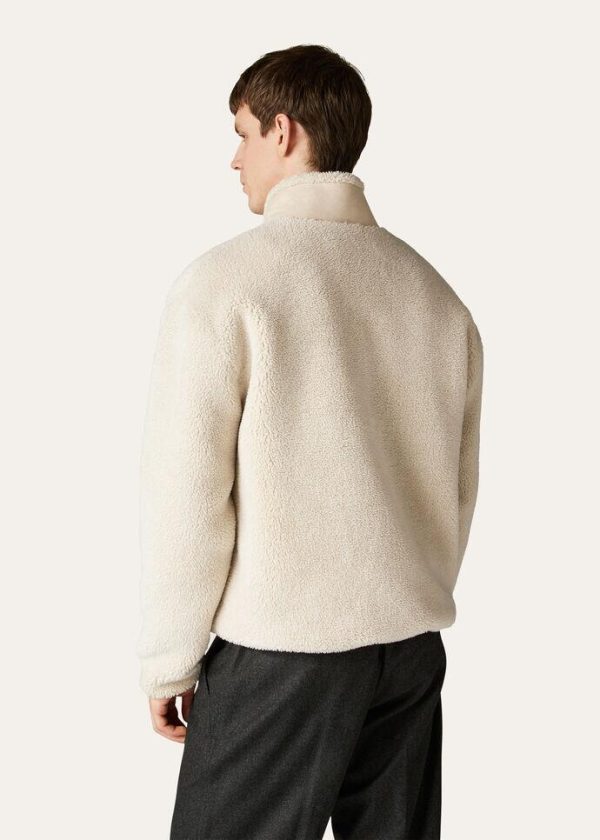 Celebrate the Christmas holidays together, in days spent on the slopes of Italian mountains, wrapped in the warmth of luxury materials. This streetwear-inspired, half-zip pullover is crafted from a curly version of Cashfur — an innovative cashmere-and-silk fabric that uses only the softest, most meticulously selected fibers. Its unique finishing treatment brings out the refined qualities of the raw materials, guaranteeing the cashmere’s natural comfort and pleasant feel. Contrasting suede details and a flowing fit create an exceptional, one-of-a-kind item that is perfect for the mountains or ultra-relaxing lounging.