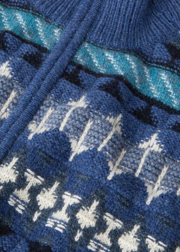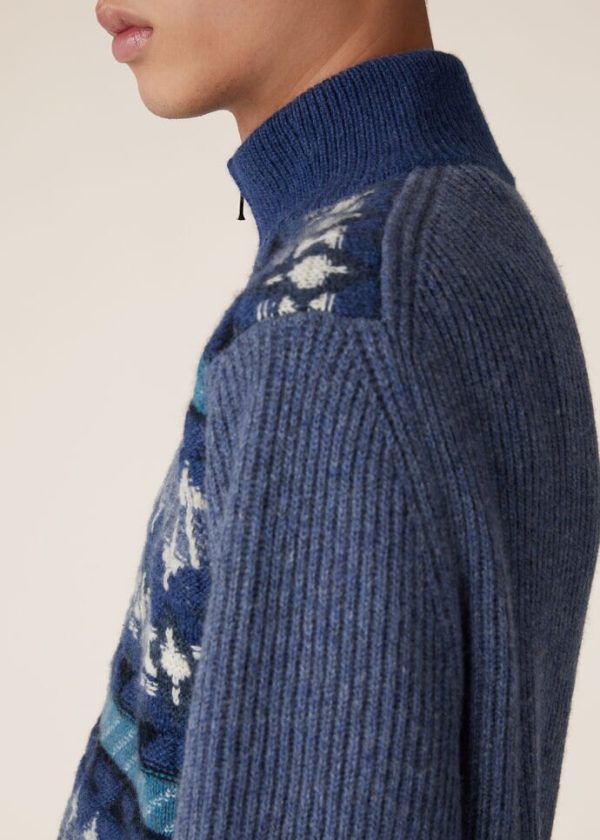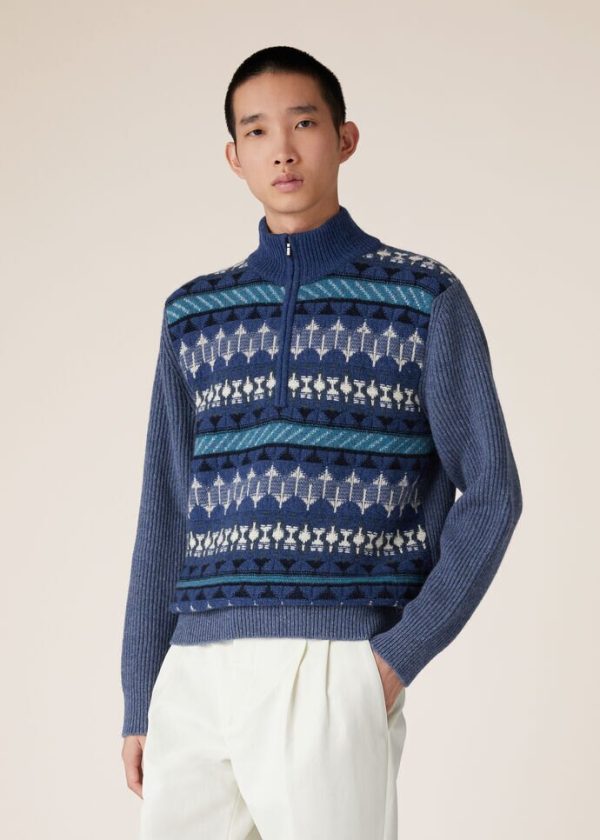 An ode to winter getaways and mountain adventures, crafted from compact, fluffy Coarsehair® yarn, this half-zip sweater features a sumptuous, multi-colored jacquard weave. A one-of-a-kind cashmere piece with the vintage-allure of a Fair Isle pattern.