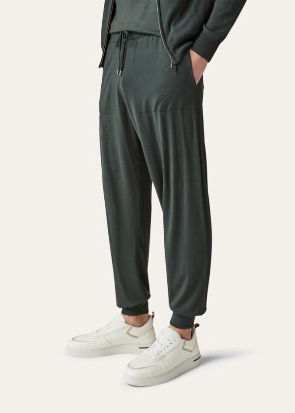 Athleisure pants made from The Gift of Kings® — Loro Piana’s exclusive selection of the world’s finest wool, with fibers measuring only 12 microns in diameter. This plain-knit style is defined by a comfortable cut and sporty allure. Two front welt pockets and two back patch pockets complete the look.