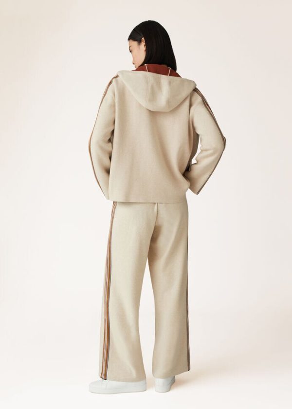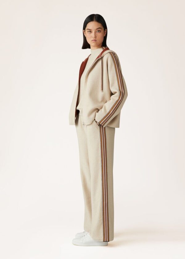 Athleisure trousers made from soft, comfortable cashmere yarn. Iconic, sophisticated side Suitcase Stripes accentuate the silhouette. They create a comfortable loungewear tracksuit when worn with a matching polo neck or bomber jacket.
