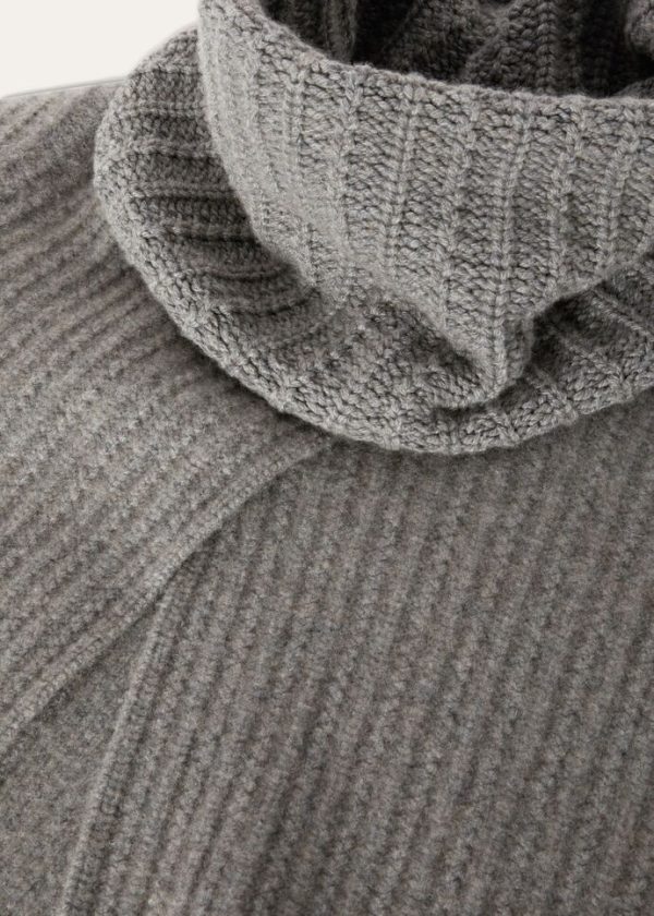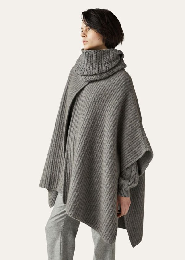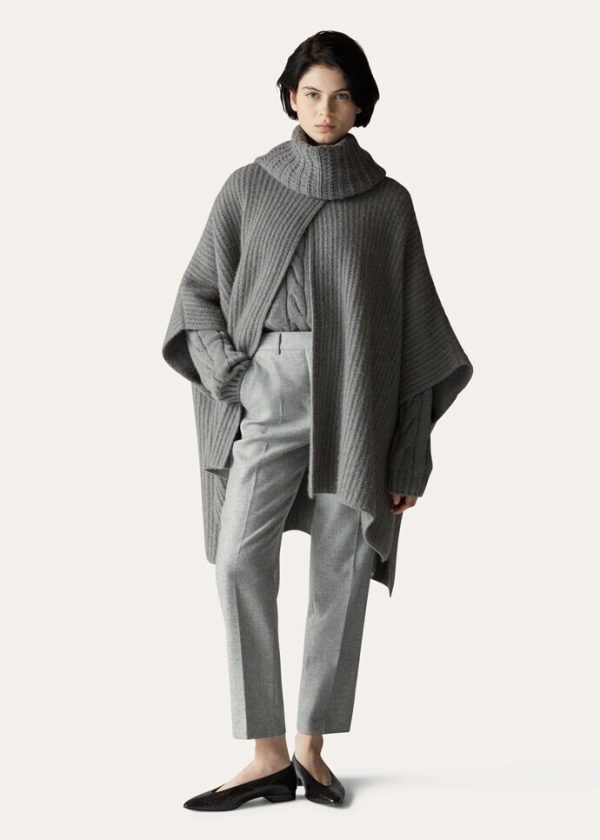 New Zealand’s limitless horizons and surreal peacefulness is embodied in an extremely luxurious knitwear selection defined by impeccable comfort. This mock-neck cape is crafted from ribbed Coarsehair® cashmere yarn with a full-bodied texture and soft, pleasant feel. A sumptuous jacquard pattern and loose-fitting, enveloping volumes complete this warm, comfortable style, making it perfect for layering with the collection’s outerwear.