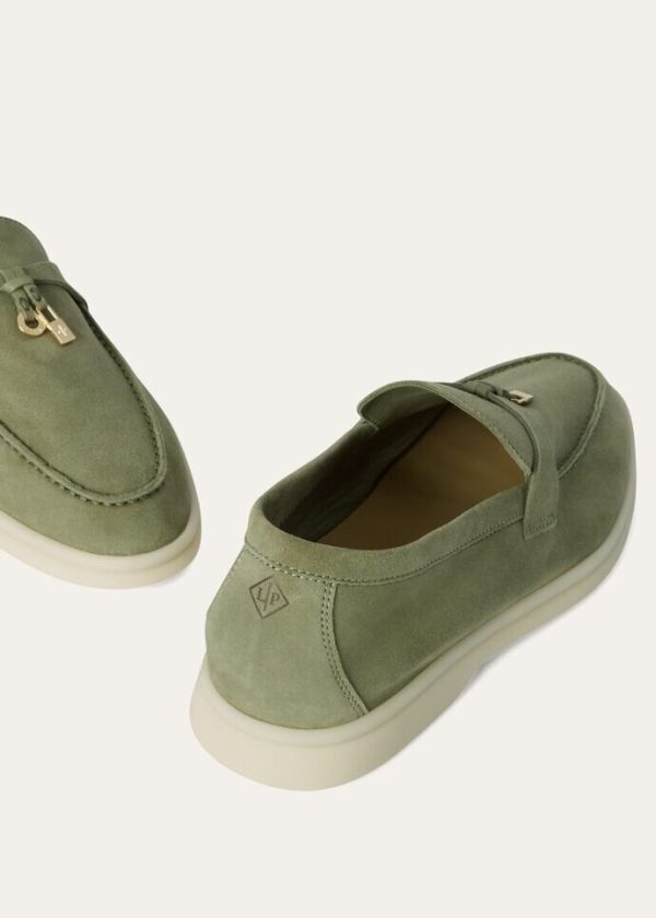 Comfortable, sporty loafers made from soft suede. They are enhanced with rubber soles — a common feature of all Loro Piana sportswear shoes. The front saddles are embellished with mini My Charms. Perfect for summers spent sailing, at the beach or in the city.