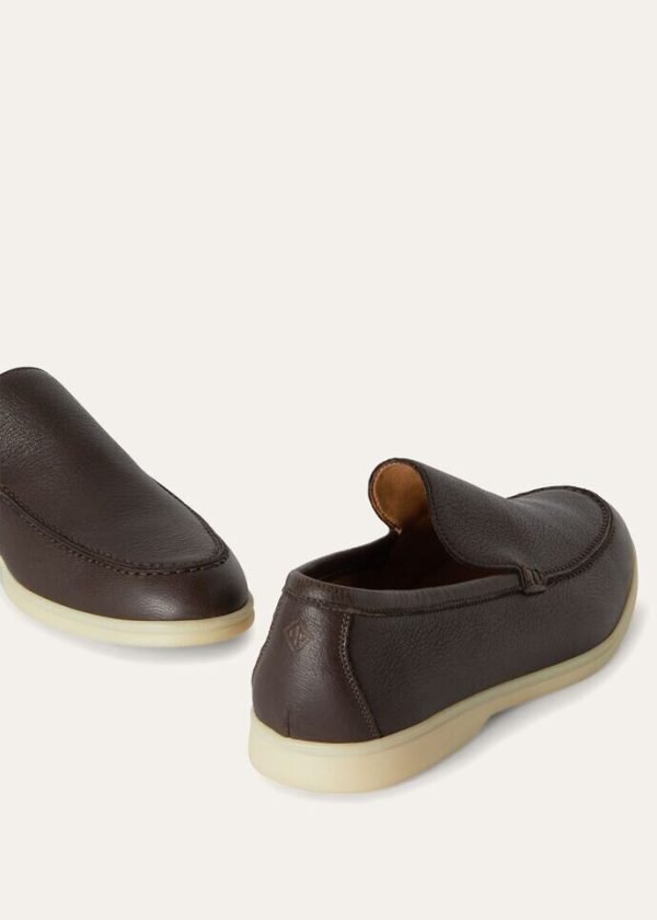 Classic loafers made from Alce Soft elk leather with a calfskin interior. This soft, comfortable style features a dedicated space on the heels where you can write your own name, just like traditional boat shoes — a hallmark of Loro Piana sportswear shoes. Perfect for completing city looks.