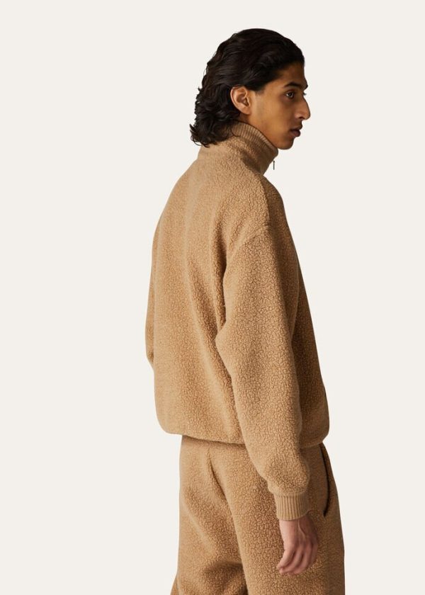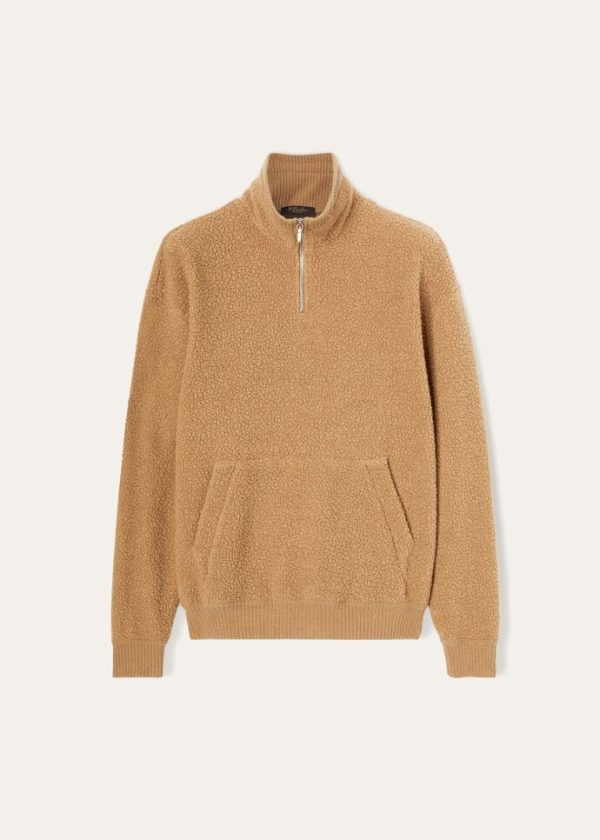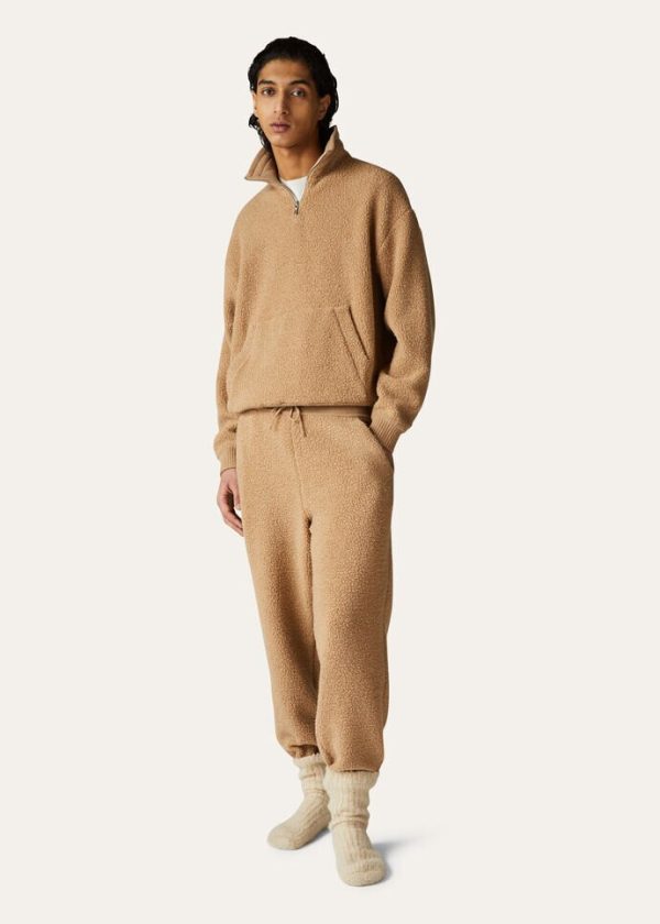 Loro Piana’s rich heritage is embodied in a capsule collection defined by natural shades, providing a new concept of everyday luxury and comfort for the coldest days of the year. Crafted from cashmere, cotton and wool jersey, this comfortable half-zip sweater features an exceptionally soft texture and shearling-like surface. Thanks to a modern, clean-lined look and dropped shoulders, it creates an impeccable athleisure tracksuit when worn with matching pants. Incredibly fluffy, warm clothing and lifestyle accessories that feel pleasant against the skin, combining freedom of movement and extremely high-quality raw materials.