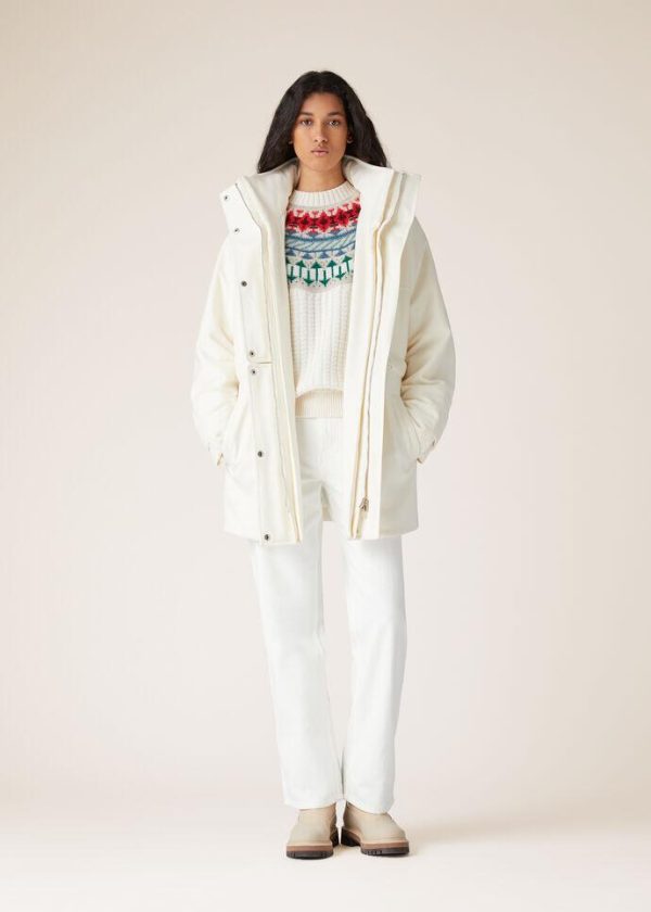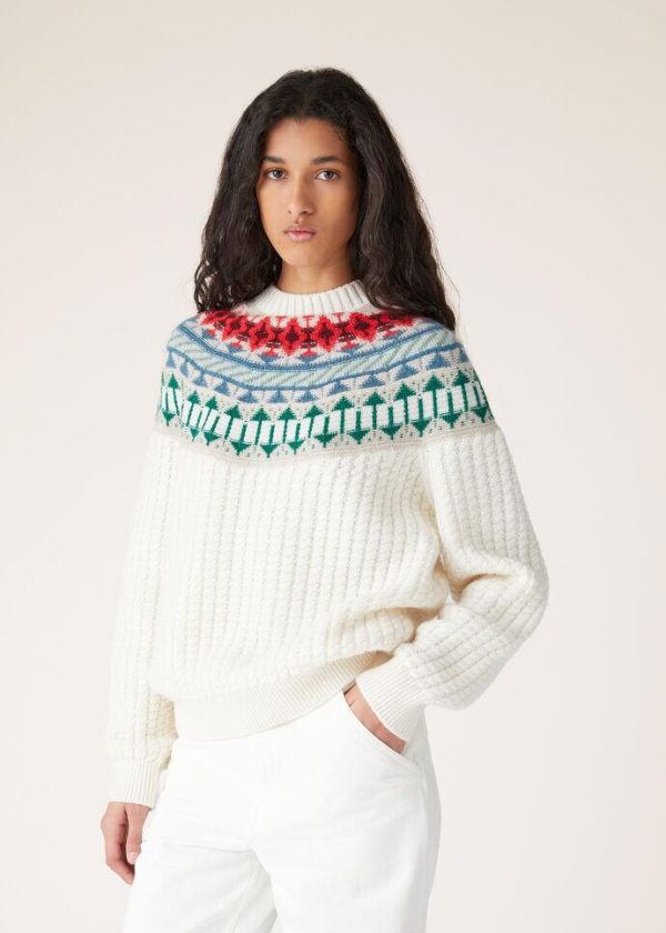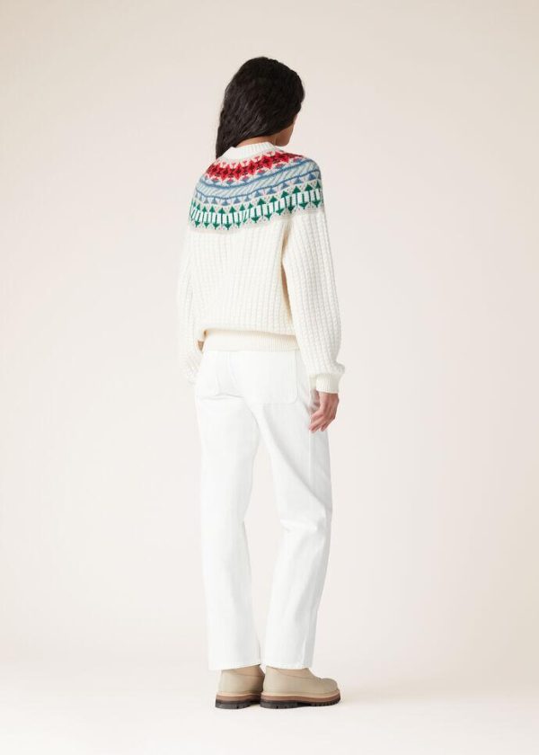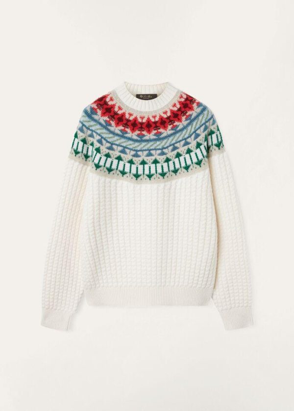 An ode to winter getaways and mountain adventures, crafted from compact, fluffy Coarsehair® yarn, this crew-neck bomber jacket features a sumptuous, multi-colored jacquard weave on the yoke and a cable-knit at the hem. A one-of-a-kind cashmere piece with the vintage-allure of a Fair Isle pattern.