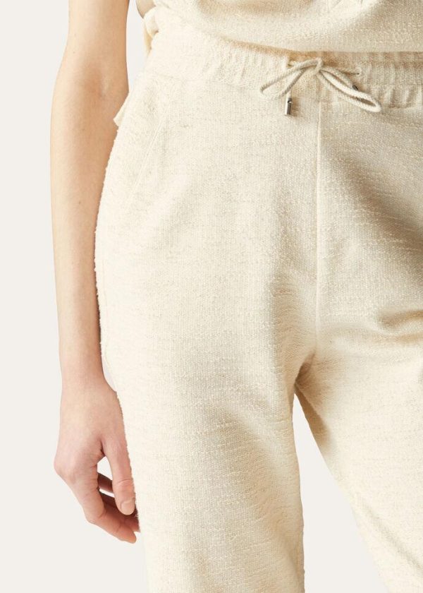 For the Autumn/Winter season, these drawstring pants are offered in linen, hemp and cotton jersey. The sophisticated blend of fibers creates a luxurious fabric with a nubby pattern, soft texture and sporty allure. When worn with the matching Tacna polo shirt or sweatshirt, they create an elegant outleisure outfit.