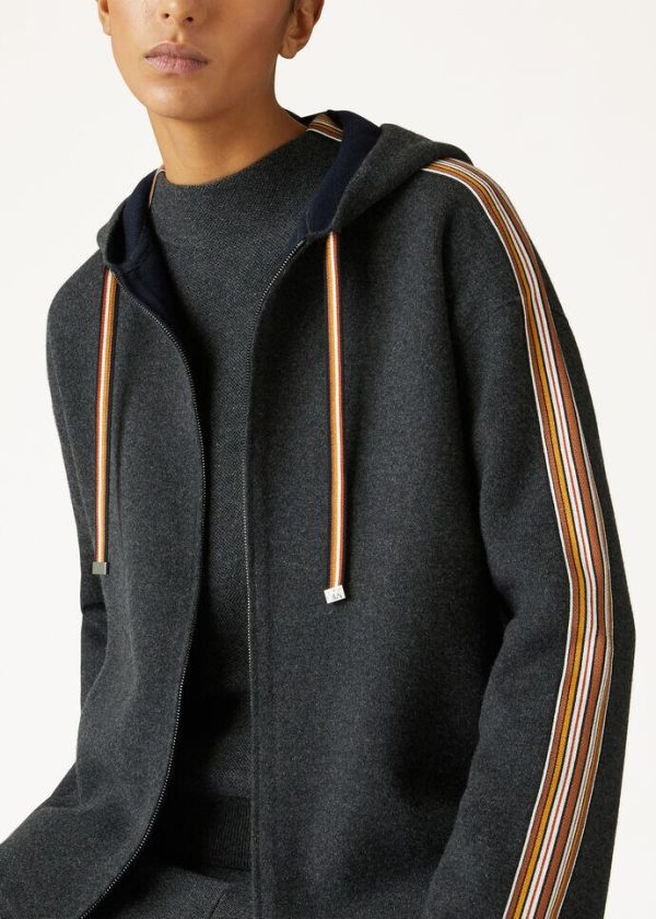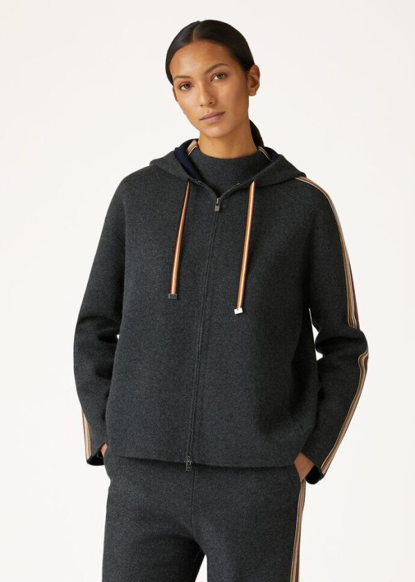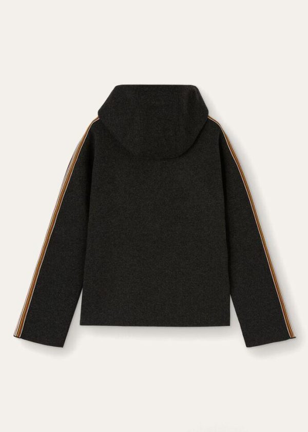 Hooded bomber jacket made from soft, comfortable, plush-knit baby cashmere. This versatile, sporty style features The Suitcase Stripe finishings for an iconic, sophisticated allure.