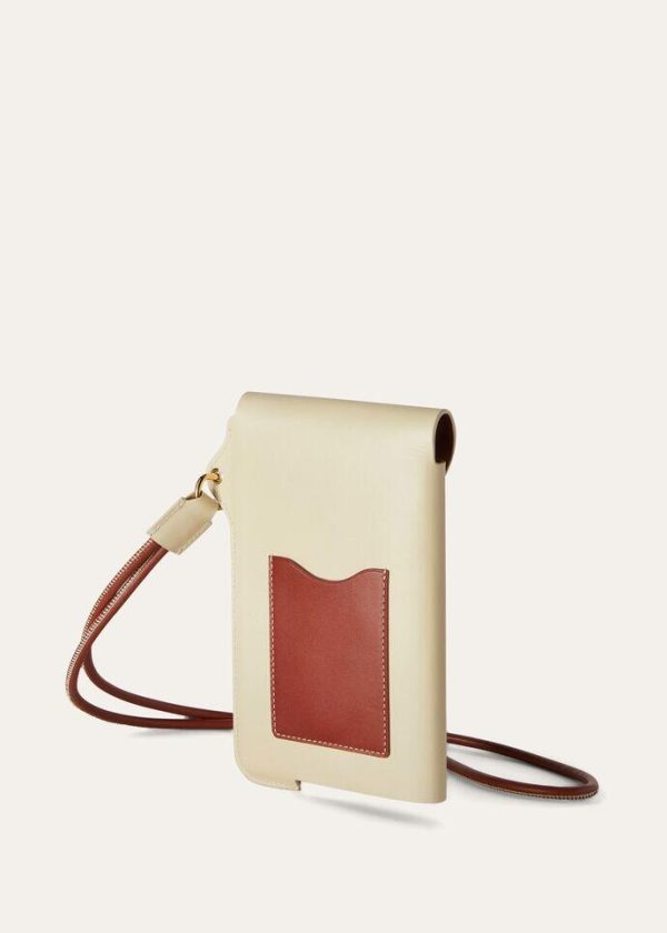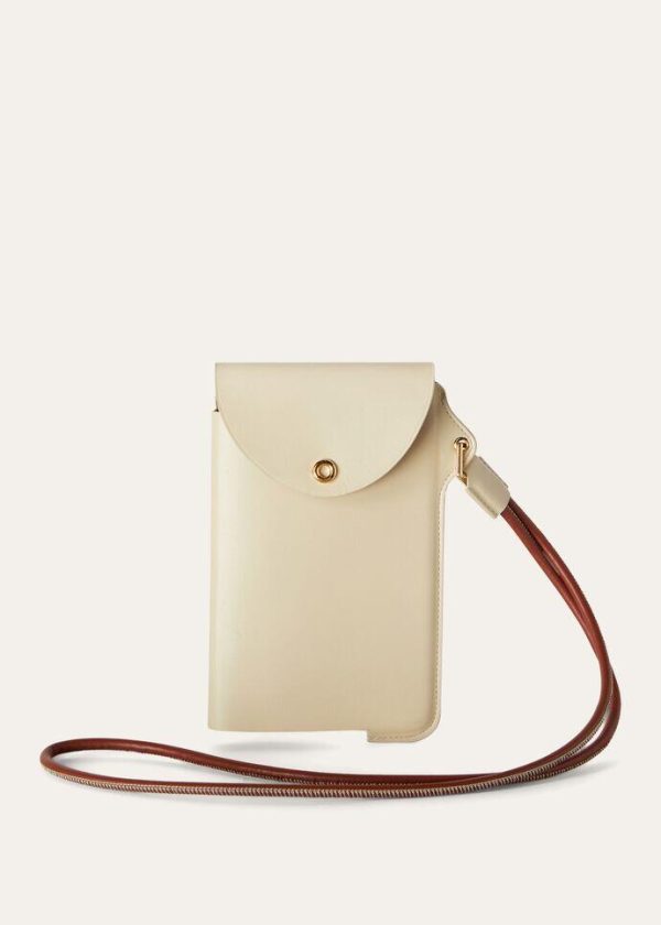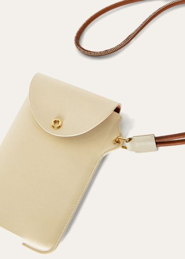 This cell phone case is part of the Ghiera line of items defined by the rounded shape and domed trim of Loro Piana’s signature eyelet. The naturally full-bodied calfskin is enhanced by an artisanal finish, providing a prominent grain, pleasant texture and sporty allure. This small gem of a carrying case can also be worn around the neck like a charm.
