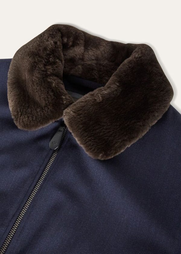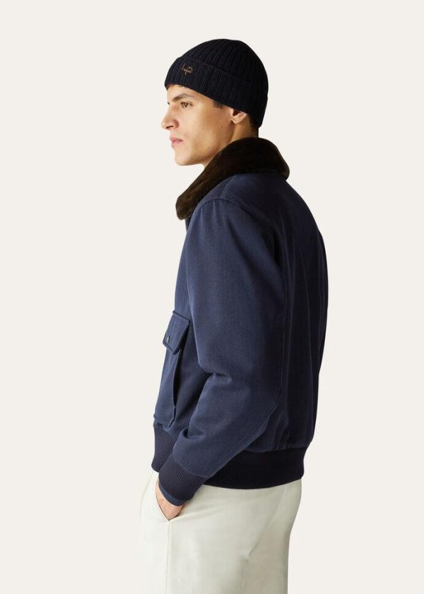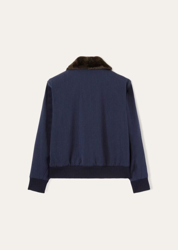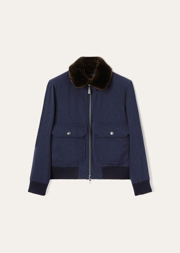 Flowing bomber jacket made from wool fabric. Thanks to a special Storm System® treatment, it is waterproof and wind-resistant. Perfect for the winter season, this aviator style features a comfortable, practical fur collar.