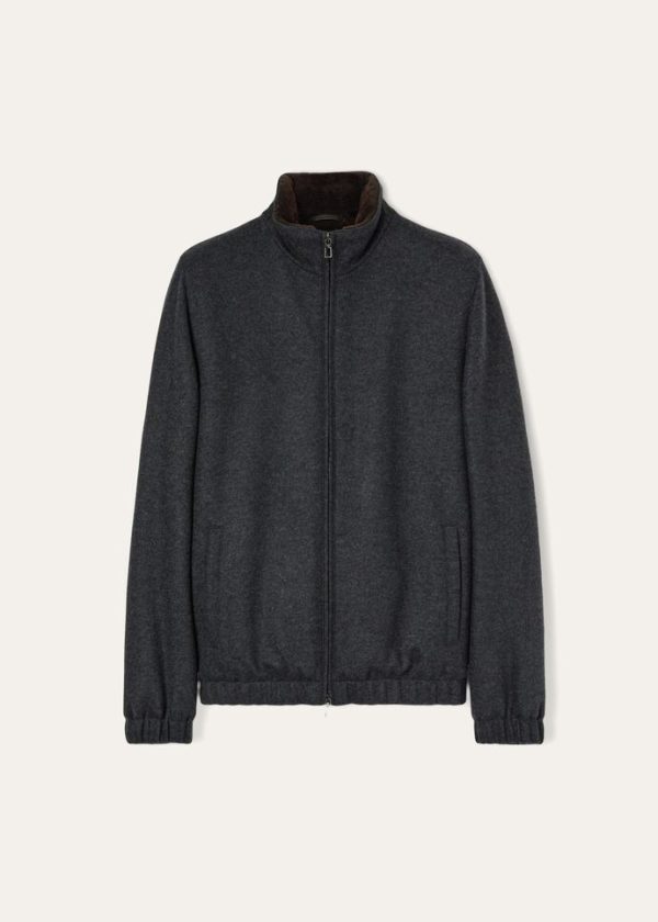 Iconic bomber in double cashmere jersey. Refined and ultra-comfortable, lined in soft, warm castorino fur.