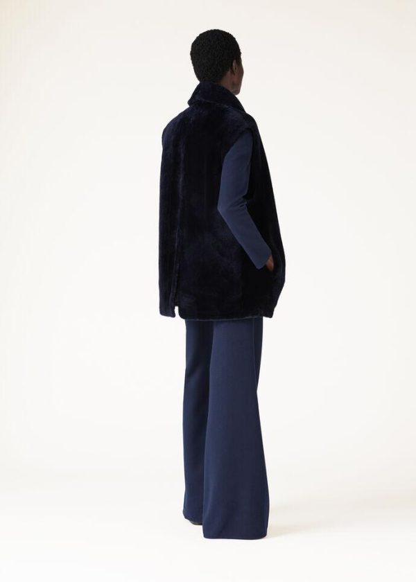 Step into a world of sublime warmth and style with the straight-cut Jikel shearling vest. With a folded collar that creates an elegant lapel effect, the voluminous, velvety soft fur is the result of a special finishing process. This vest is more than just an outer layer; it’s an exquisite embodiment of warmth and sophistication, inviting you to embrace both luxury and style with every touch.