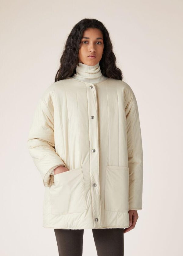 Nylon Side: Patch pockets and quilted motif on the body and sleeves