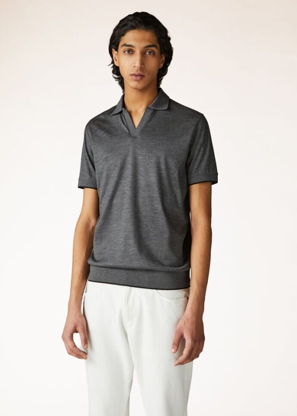 Loro Piana Polo And T-Shirts | Buttonless Polo Shirt Gray Melange Man