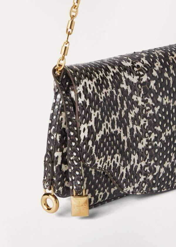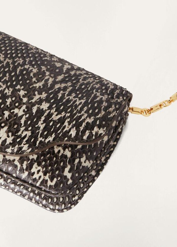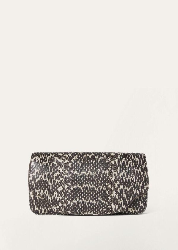 For the Winter season, a new version of the Onde clutch is offered in meticulously selected, luxury snakeskin with a smoky finish that is crafted using complex techniques, making each style a one of a kind. The smooth, sinuous design is enhanced with embossed details and topstitching with a decidedly sporty allure. This laidback bag is the embodiment of a new modern, versatile femininity.