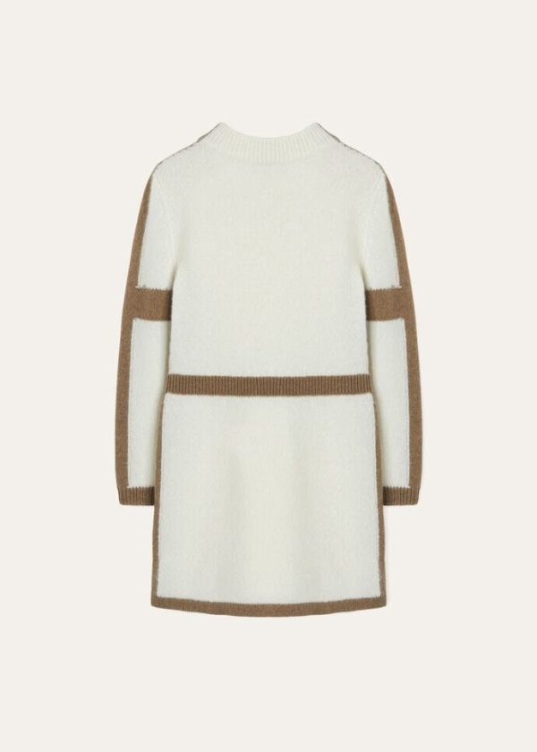 Celebrate the Christmas holidays together, in days spent on the slopes of Italian mountains, wrapped in the warmth of luxury materials. Crafted from plain-knit cashmere and silk with a brushed, slightly woolly look, this kid’s dress is enhanced with contrasting, intarsia-knit Coarsehair® cashmere. The blend of materials creates a rustic, full-bodied, exceptionally soft texture. A versatile style that can be worn as a tunic or minidress, thanks to an adjustable drawstring waist.
