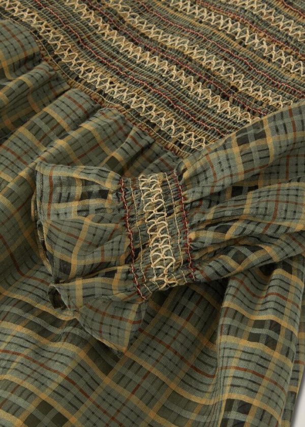 Australia’s natural wonders and ancient cultures are evoked in garments with a laid-back allure and gossamer texture. Crafted from silk organza, the Charlene dress features a highly lightweight, slightly transparent weave. The fabric’s washed finish provides a lightly dynamic surface that is extremely soft to the touch. Its flared cut is enhanced by smocking with cotton-yarn embroidery, a gathered bodice and ultra-feminine, gossamer full skirt.