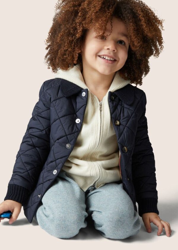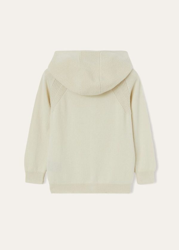 A miniature version of the hooded bomber in knitted baby cashmere. Casual and ultra-soft, ideal teamed with the Merano Trouser to create a supremely comfortable tracksuit for play and leisure time.