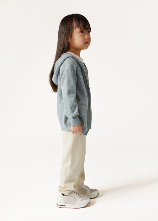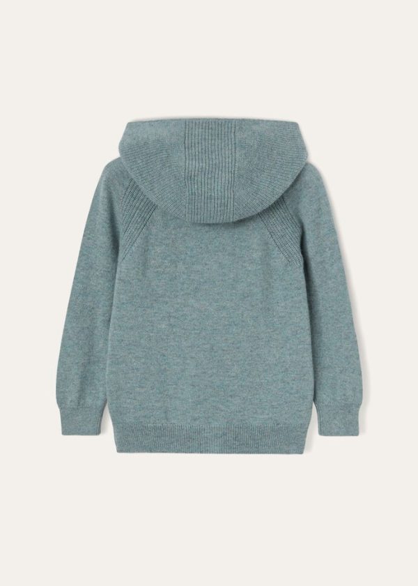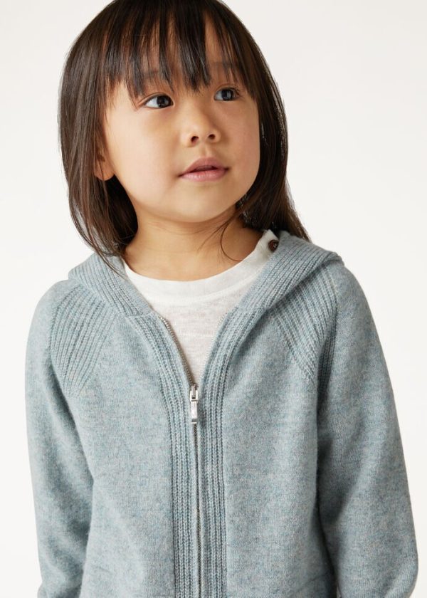 A miniature version of the hooded bomber in knitted baby cashmere. Casual and ultra-soft, ideal teamed with the Merano Trouser to create a supremely comfortable tracksuit for play and leisure time.