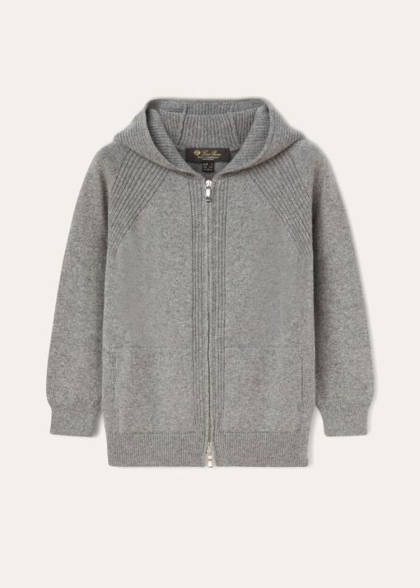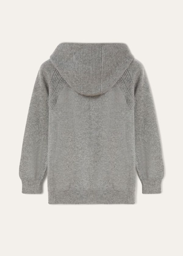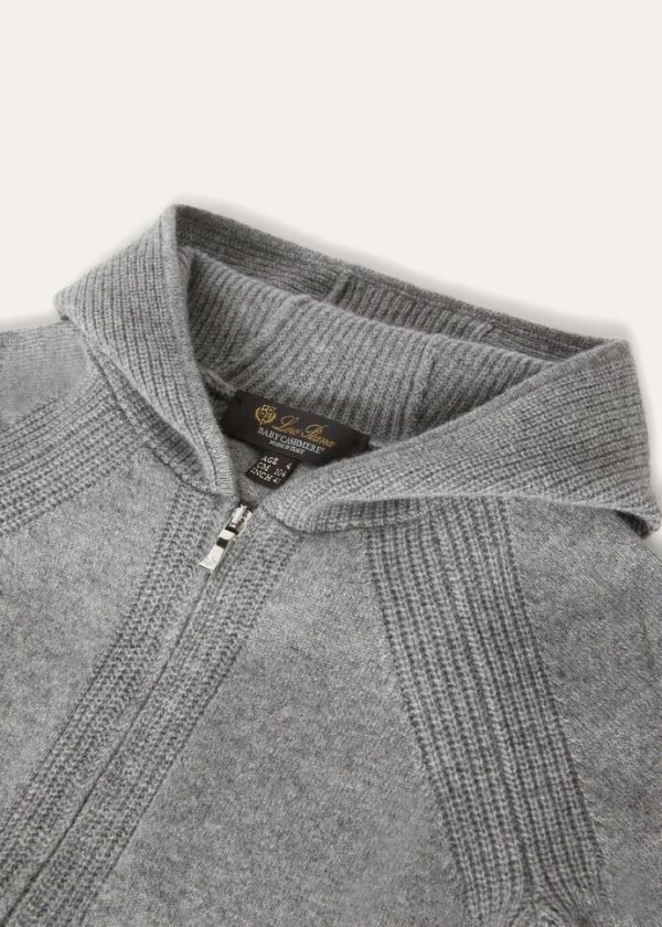 A miniature version of the hooded bomber in knitted baby cashmere. Casual and ultra-soft, ideal teamed with the Merano Trouser to create a supremely comfortable tracksuit for play and leisure time.