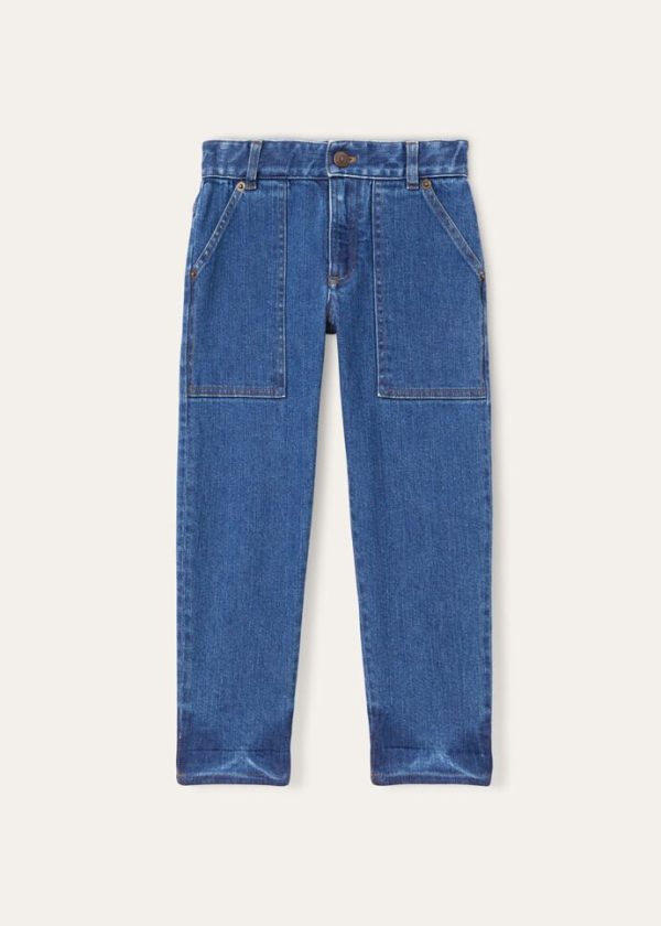 Effortless cool meets artisanal excellence in our casual pants, crafted from Japanese cotton denim in a medium-light shade. Sourced from the renowned city of Kurashiki, famed for its high-quality artisanal denim, this fabric is exceptionally exclusive and offers a soft, compact feel. Featuring large front pockets with stitched detailing and a carrot fit that gracefully tapers to the bottom, these pants seamlessly embody a casual yet sophisticated esthetic.