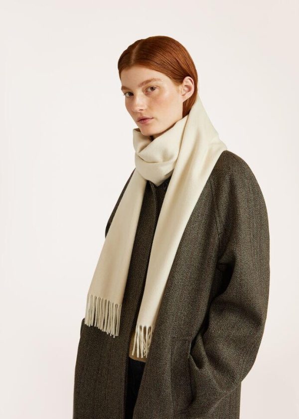 Contemporary two-tone scarf crafted from baby cashmere, and finished with long fringe trim. Perfect at the start of the season with relaxed casual ensembles.