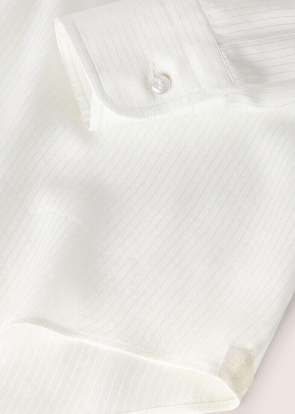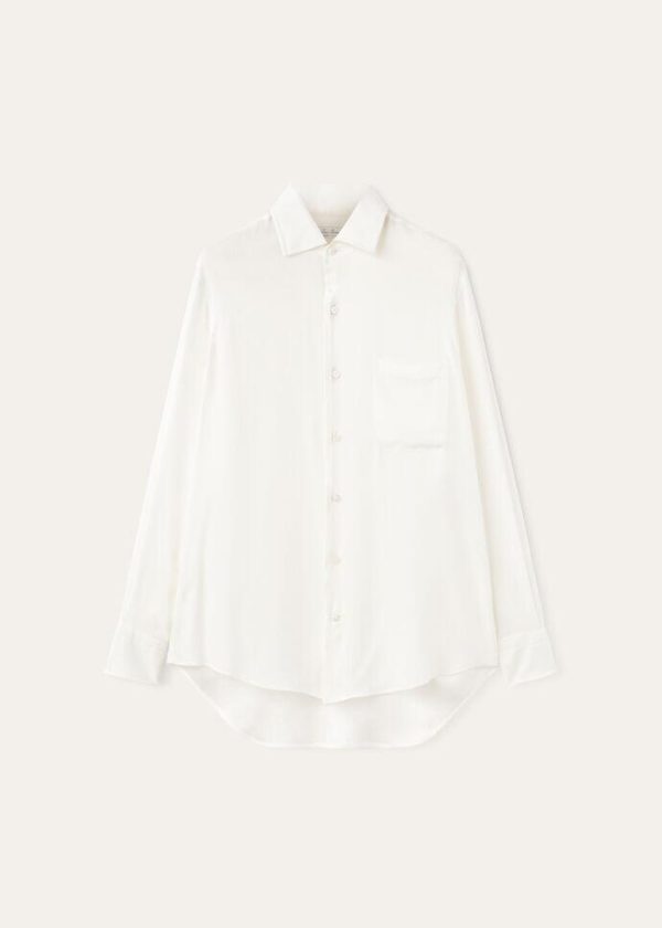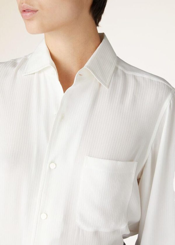 The iconic André shirt is a reflection of its namesake menswear garment, with the same distinctive styling details. Meticulously crafted from silk satin with a distinctive pinstripe pattern, this shirt exudes a sense of luxury. Relaxed yet extremely refined, it is the definitive shirt for casual dressing.