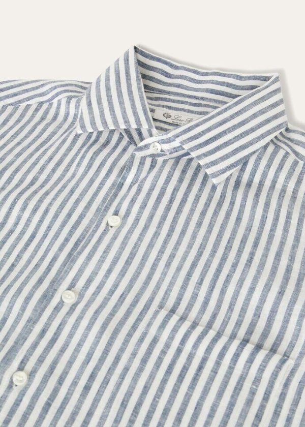 Iconic Loro Piana shirt in striped linen. The collar with facings ensures a crisp, impeccable finished look, also when worn open without a tie. The definitive Loro Piana shirt for leisure time dressing.