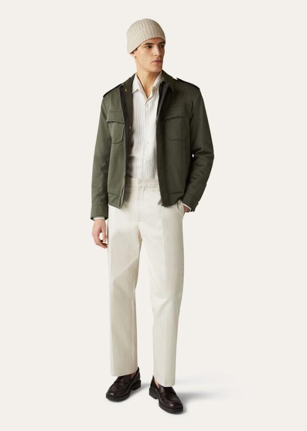 Gusset with the Loro Piana logo and cuffs with rounded corners and double button